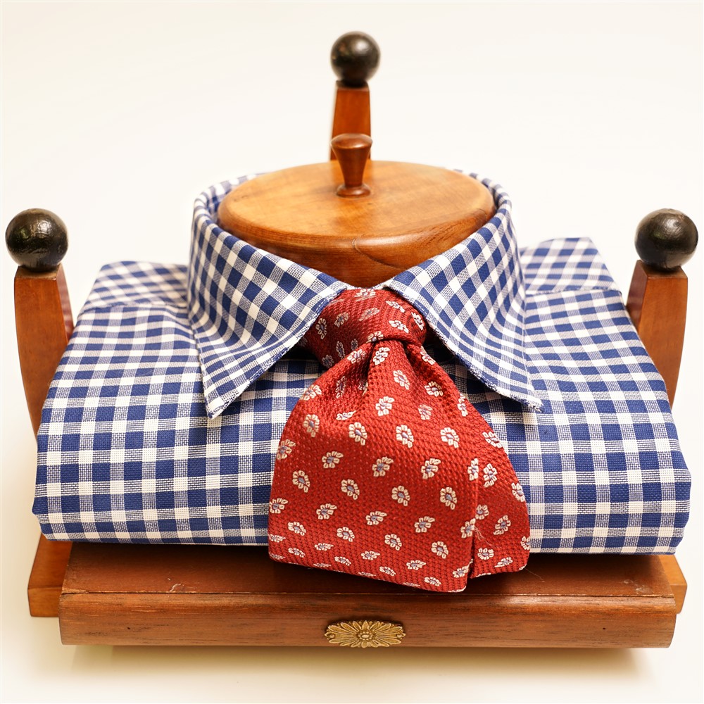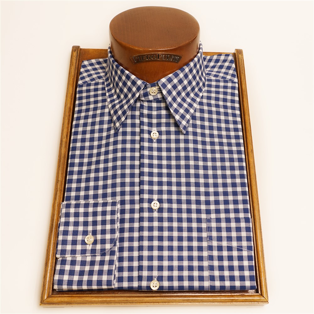 Camicia collo bottoncini nascosti quadretto bianco e blu tessuto lavorato