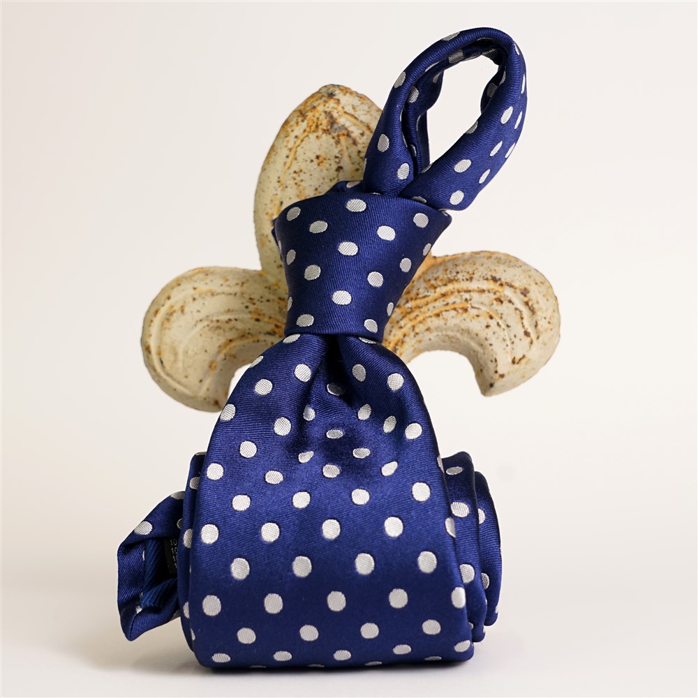 Cravatta pois fondo raso BLU avio con pois argento pura seta
