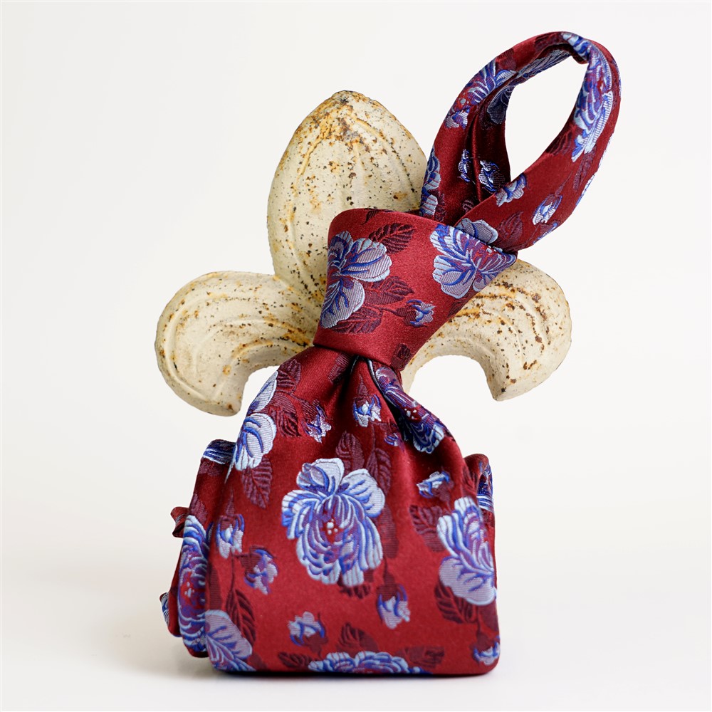 Cravatta fondo raso bordeaux con rosa azzurra e celeste