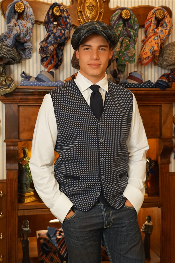 Gilet quadrettini blu in pura lana 100%
