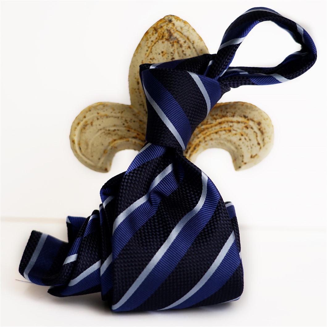 Cravatta regimental navy blu riga gros grain royal e raso celeste
