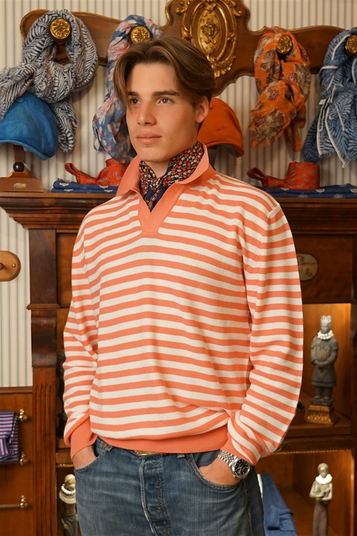 Bandana con fondo cammello con rose rosse e fiordalisi azzurri e con bordo rosso, in crèpe de Chine di pura seta. Disegno originale realizzato per noi a Como e realizzata a mano. Dimensioni 61 cm per 61 cm. Ideale per essere usata al posto della cravatta dentro la camicia.