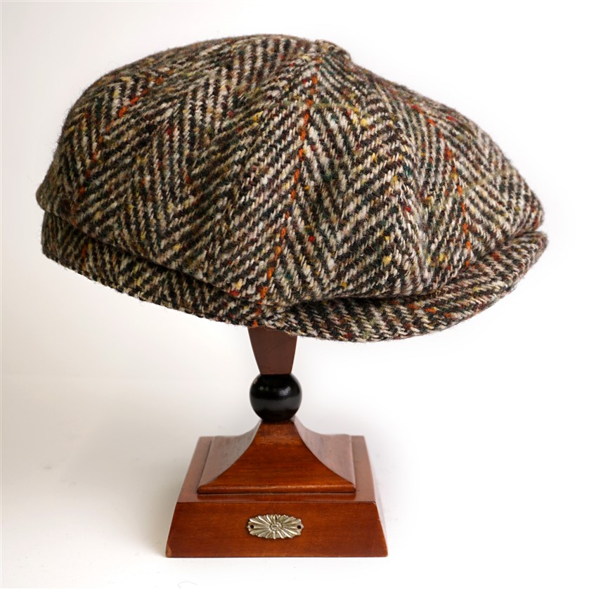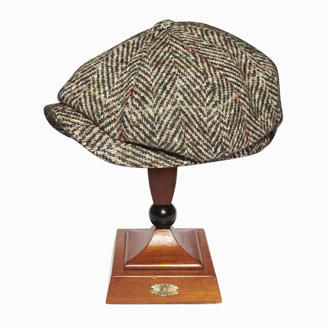 Berretto Hatteras spinato melange beige, verde chiaro con piccole bottonature arancio, un colore classico e versatile facile da abbinare.