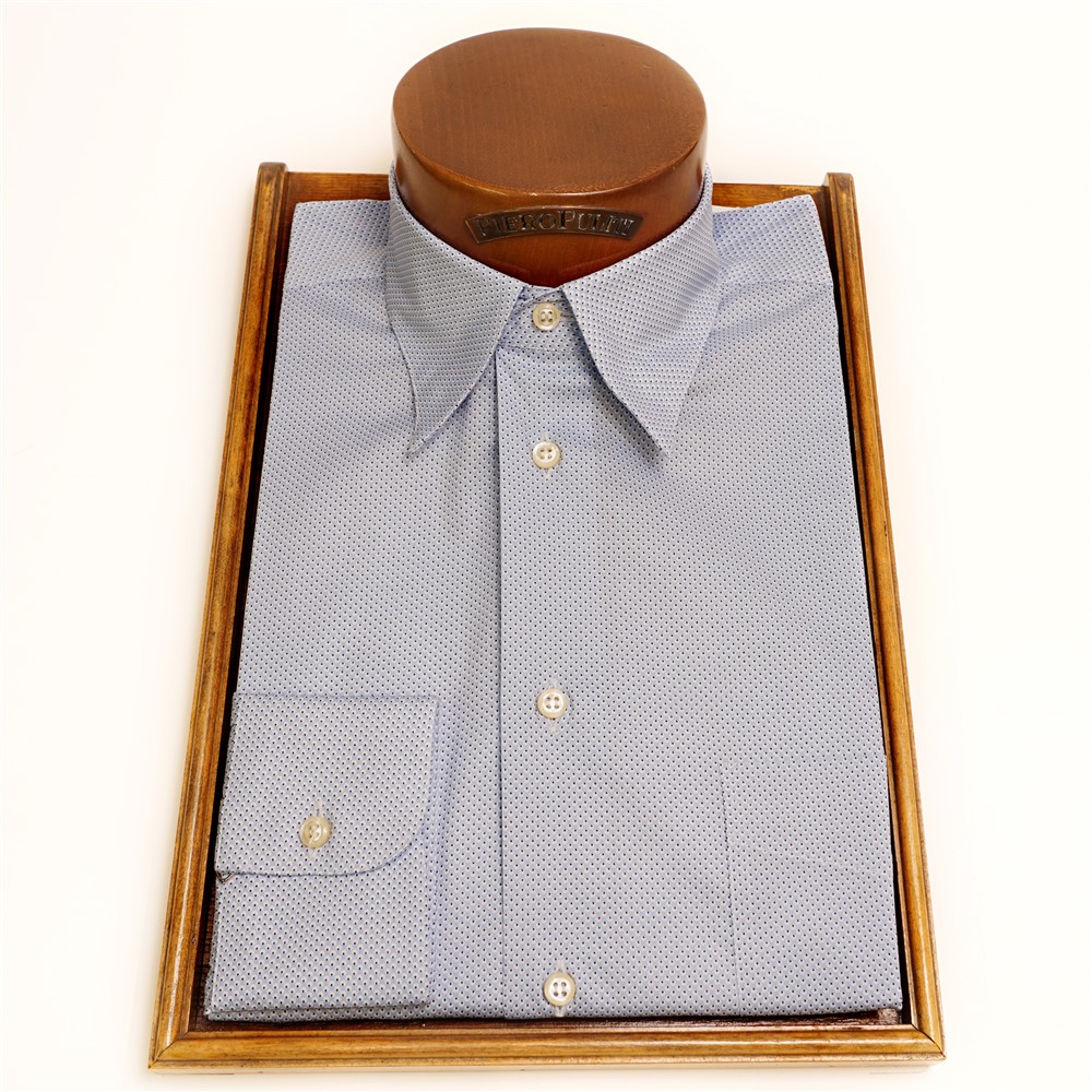 Camicia collo bottoncini nascosti con taschino celeste stampata con pallini blu