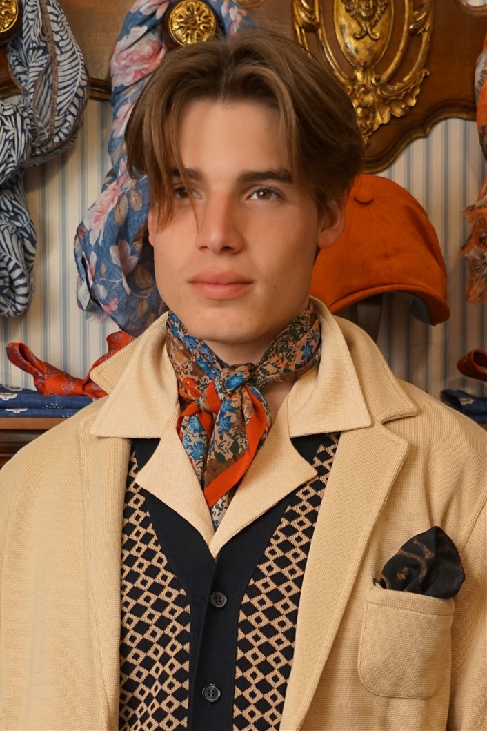 Blazer colore sabbia con tasche e taschino e bottoni oro, sfoderato in puro cotone.